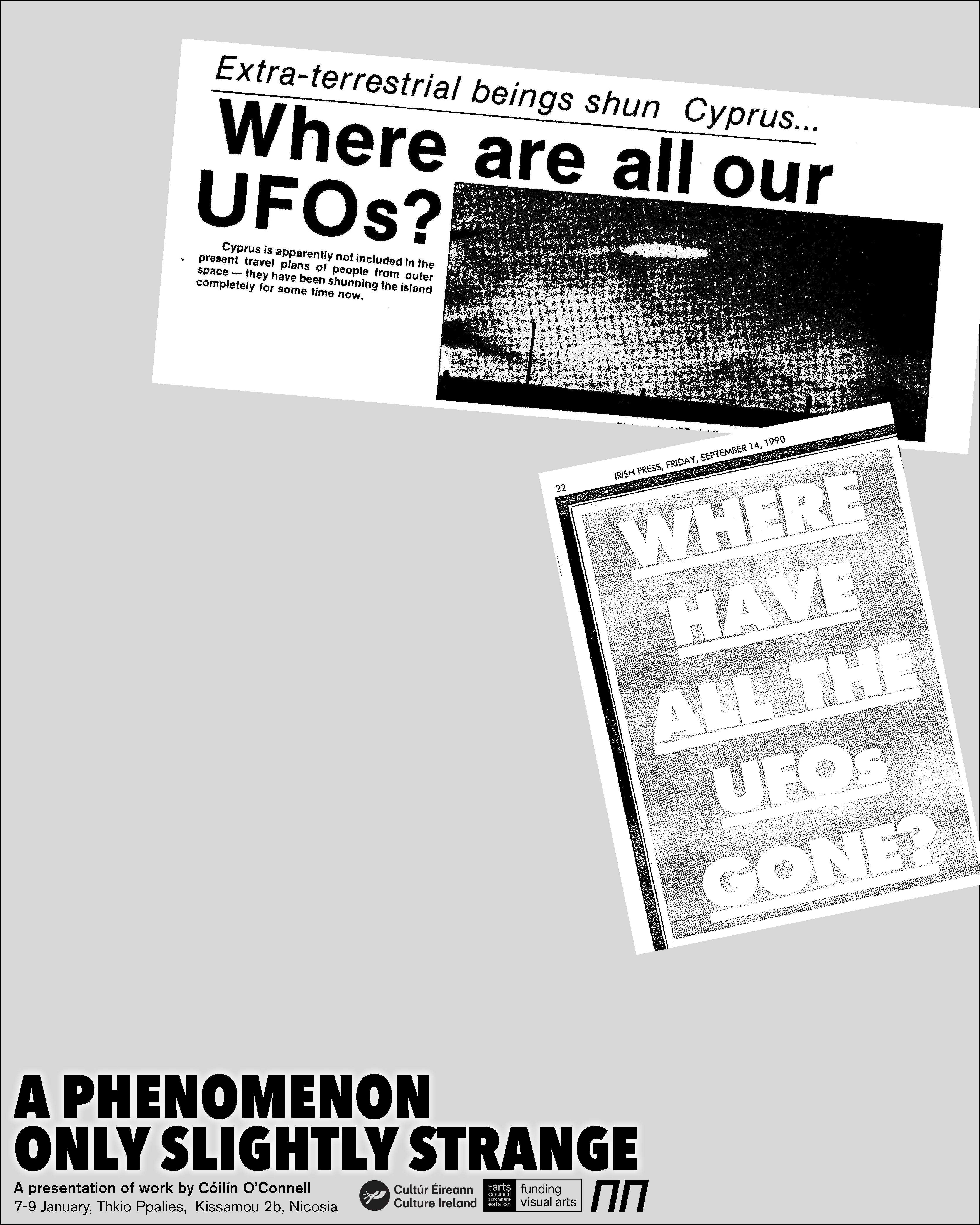 In this moment of an ending order and perceived collapse, what does the UFO mean to the peripheral and post colonial states of Ireland and Cyprus? The “U” in UFO currently means “unapproachable” and “unresearchable” just as much as it means “unidentified”. The UFO does not manifest offering solutions to the periphery, but it arrives to undermine forgone conclusions. With reports of UFO activity increasing, can we really afford to ignore the questions that they raise?