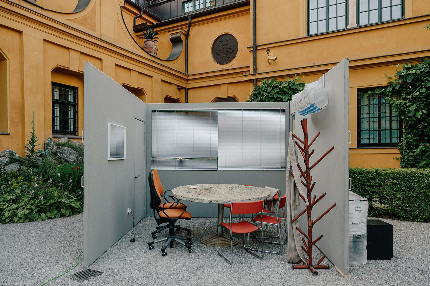 The video work consists of a first part in which the bank appointment is re-enacted by actors. A speculative reconstruction of the bank room, conceived on the basis of the family's memory logs, serves as a set and was developed in collaboration with a group of artists. Each object in the room is a work of art that is present at the encounter and registers the possibility of a different reality. Inspired by Abbas Kiarostami's film "First Case, Second Case" (1979, Iran), in the second part of the video various people interviewed react to the reenactment. Their answers reflect perspectives on the internationally widespread problem of real estate speculation and the resulting debt: from interest groups in Cyprus, rent activists from Barcelona, Berlin and Beirut, from people who have experienced something similar, as well as from lawyers, economists and artists.