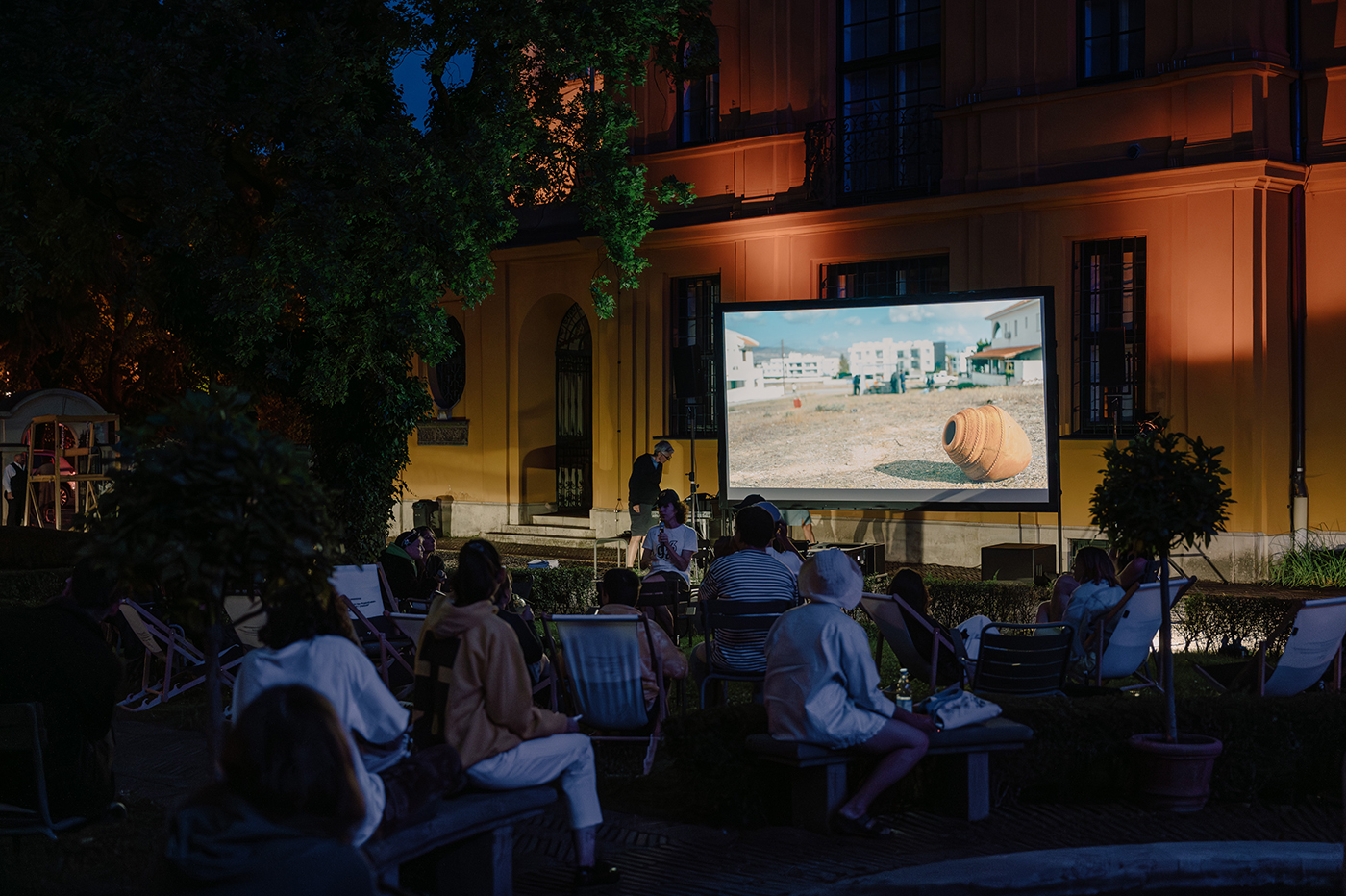 "The Broken Pitcher" focuses on collaboration and dialogue. It negotiates the question of how the financial system works and how one could intervene in its processes and change them. In Munich, the work will be shown on several evenings in a public space between June and August 2023. After the screenings, there will be time for an exchange.