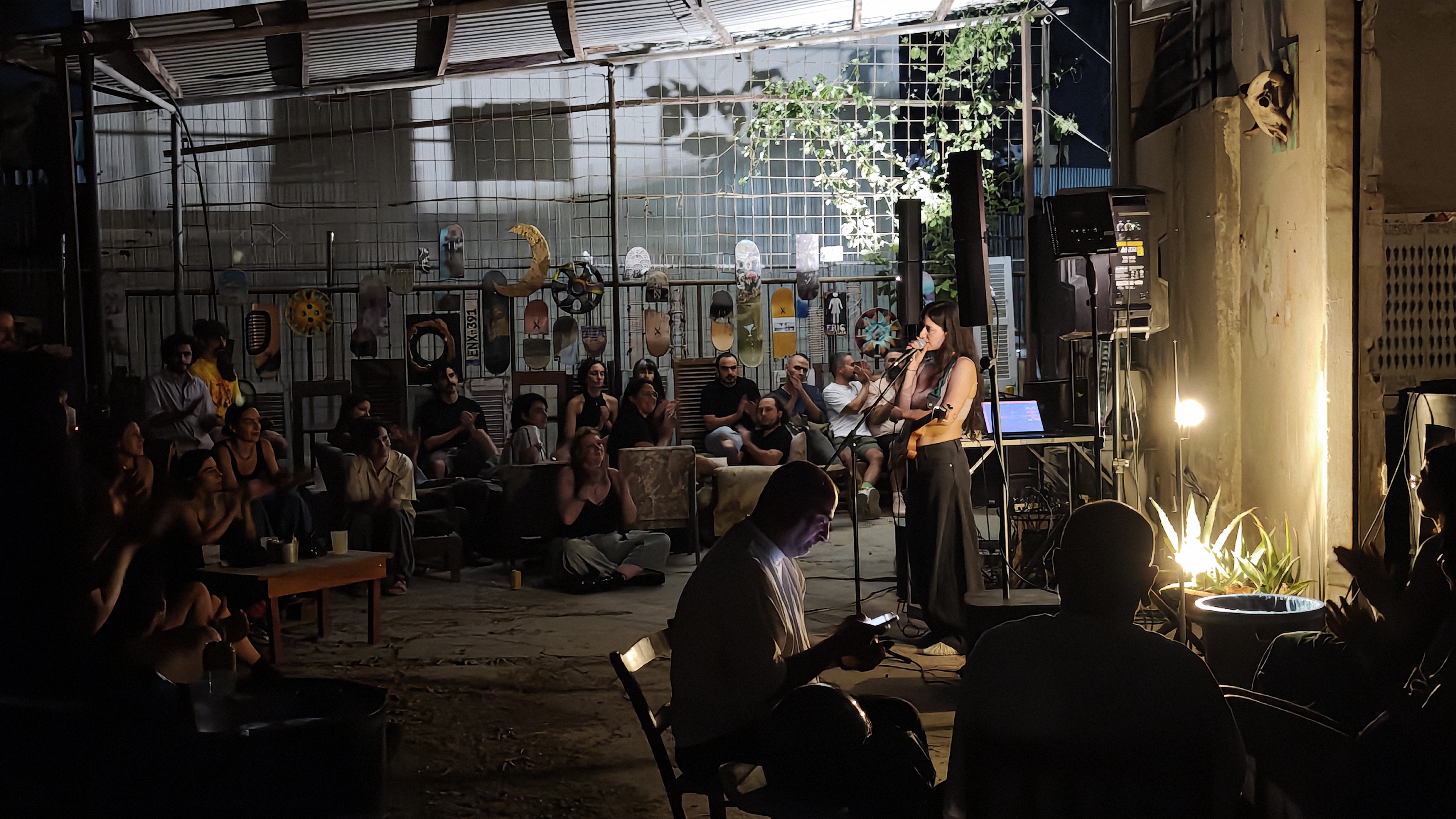 In 2022, Sandy Chamoun released her debut solo album, “Fata17”, a three-track sonic intervention created in response to Lebanon’s October 2019 revolution. Rooted in collective spontaneity and unity amid despair, the album preserves the sounds, emotions, and solidarity that once filled the streets of Beirut. Drawing on field recordings—voices, chants, and instruments—from protests across Lebanon, Iraq, and Chile, “Fata17” weaves together saxophone, bouzouki, percussion, and Chamoun’s voice into a resonant soundscape of resistance.