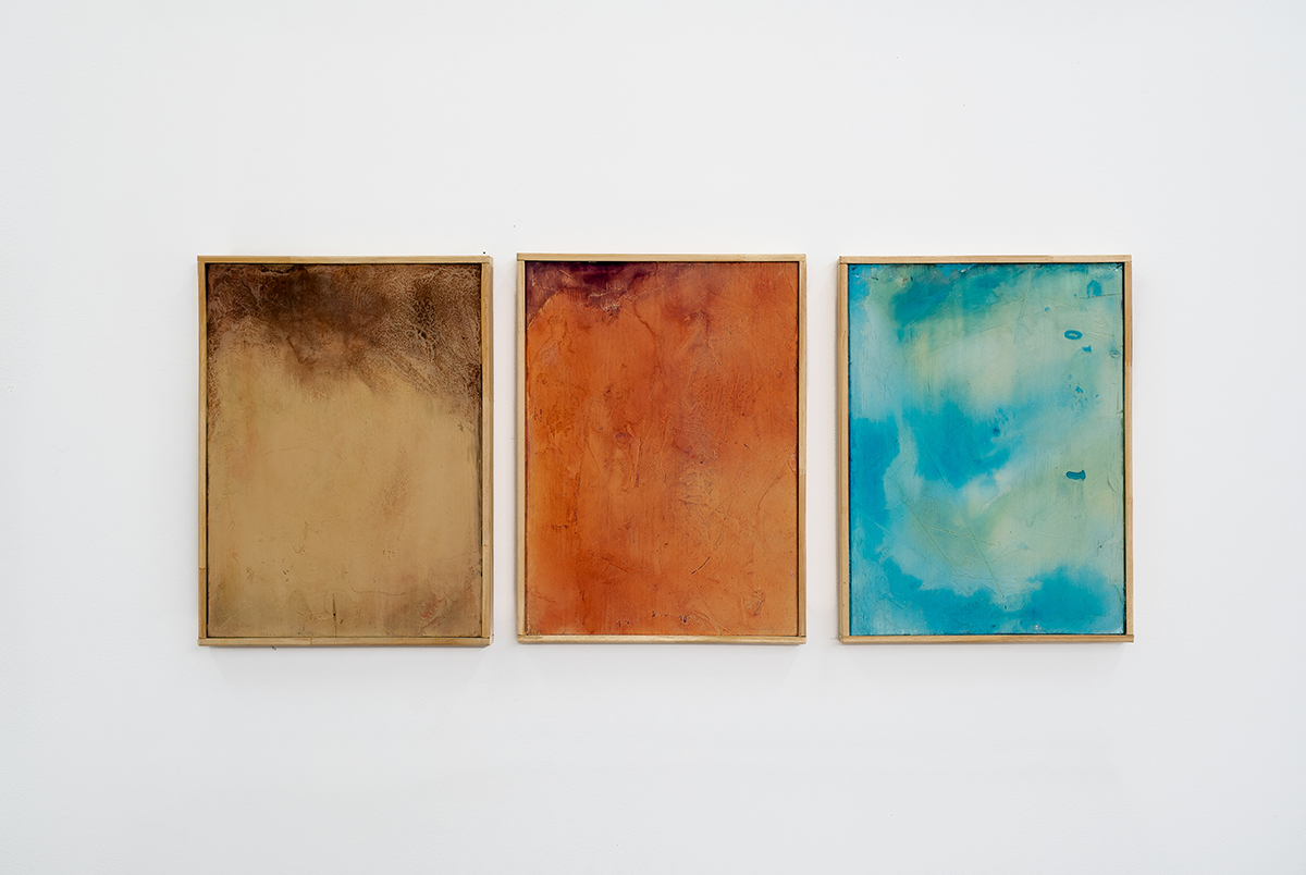 Gradient paintings aligned, same technique and dimensions. A sculptor’s dream or prayer to be a painter could only be multicolored and relentless.