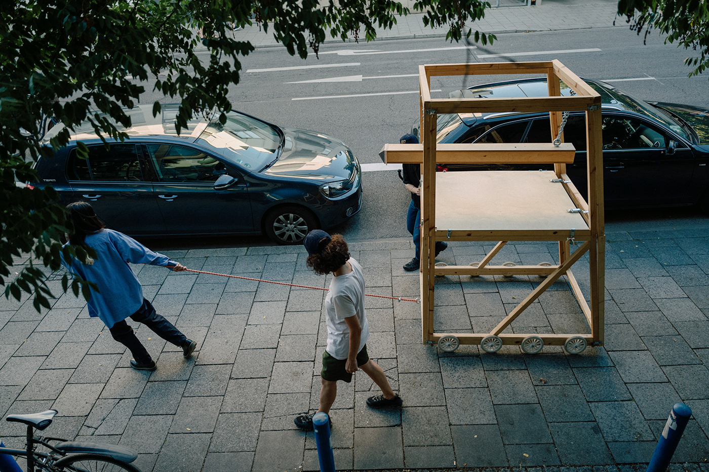 A Trümmerkind march by Raissa Angeli is an invitation to walk around and alongside a siege machine, contemplating the various forms invasion and fortification can take. Raissa Angeli is a visual artist living and working in Nicosia, Cyprus. She works mainly in the field of sculpture. Watch performance